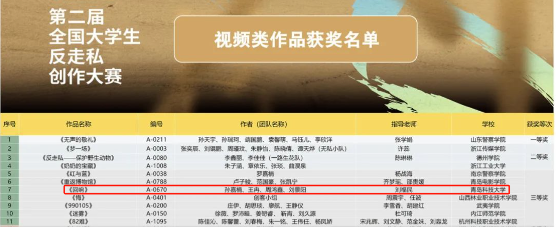 近日,第二届全国老员工反走私创作大赛获奖名单公布,学校多项作品在本次大赛中获奖。其中,yl23411永利集团官网获优秀组织奖(全国仅77项)。yl23411永利辅导员刘福民、金莹莹获优秀指导教师奖(全国仅95名)。由yl23411永利员工孙嘉楠、王冉、周鸿鑫、刘景阳创作的作品《回响》获视频类三等奖(全国仅7项)。