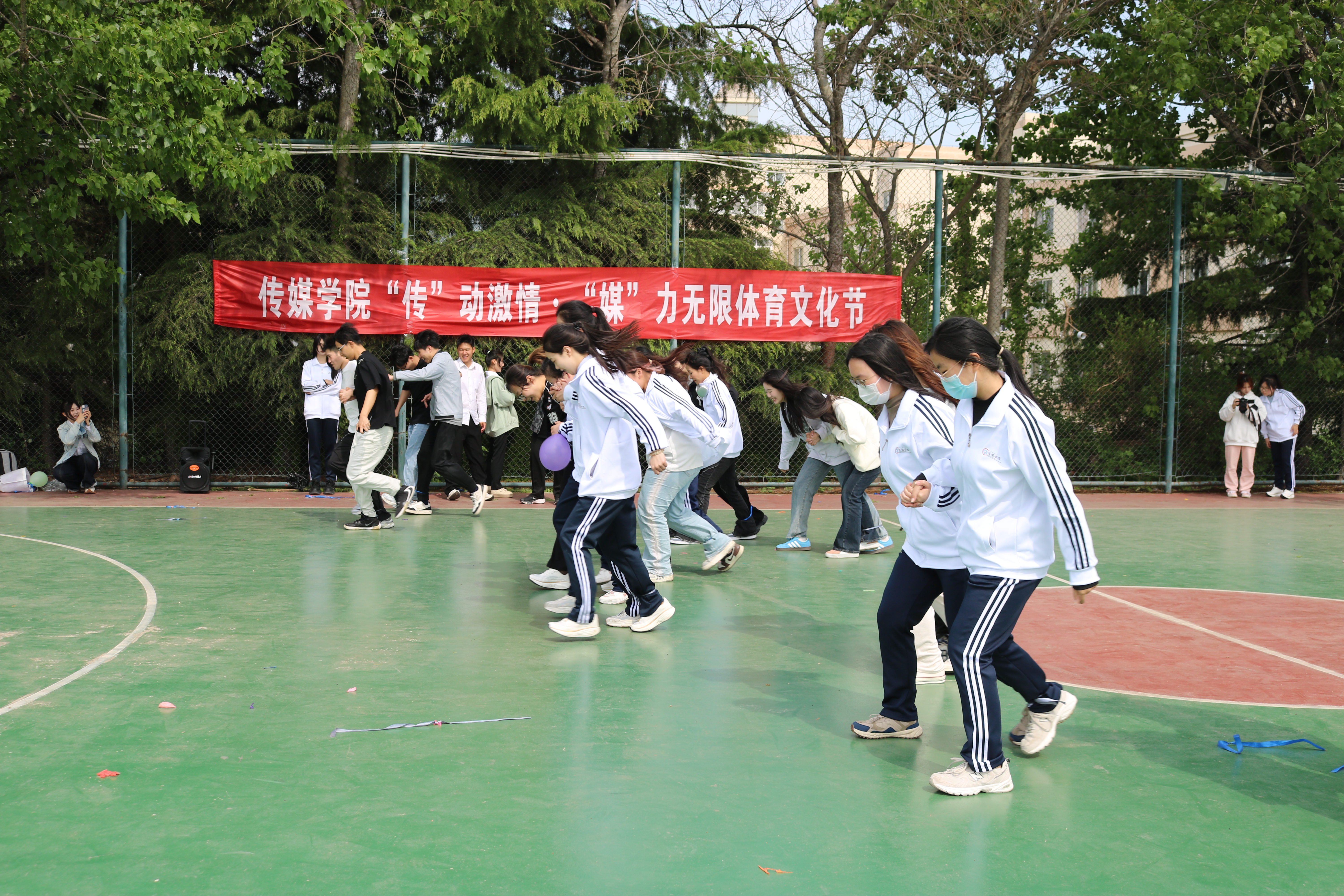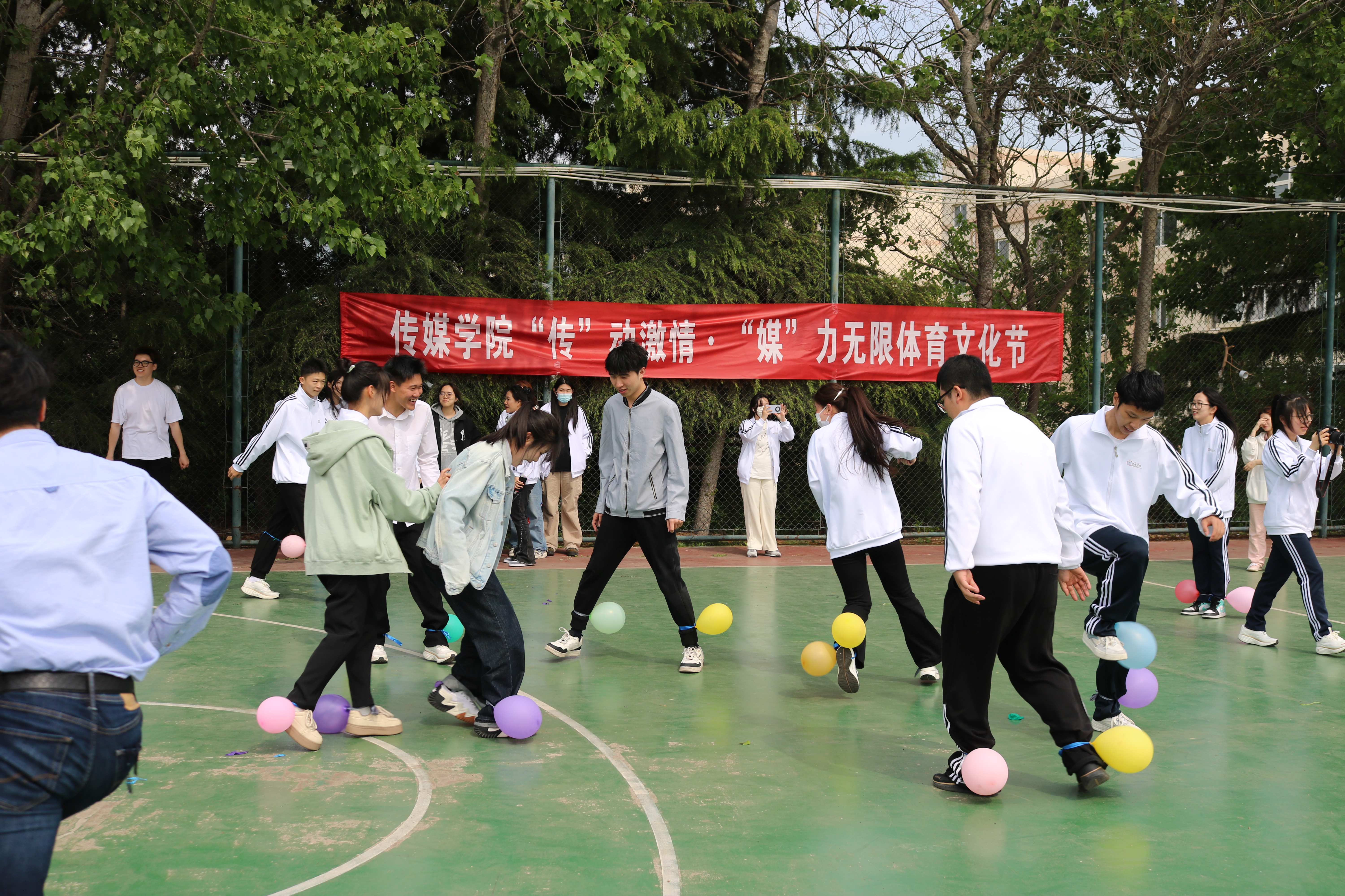 最后,现场师生共同参与了系列体育趣味运动,大家通过踩气球、一圈到底、两人三足等生动有趣的活动,凝聚了力量、锻炼了身体、增进了友谊。学院“传”动激情·“媒”力无限体育文化节在一片欢声笑语中落下帷幕。